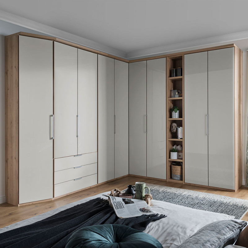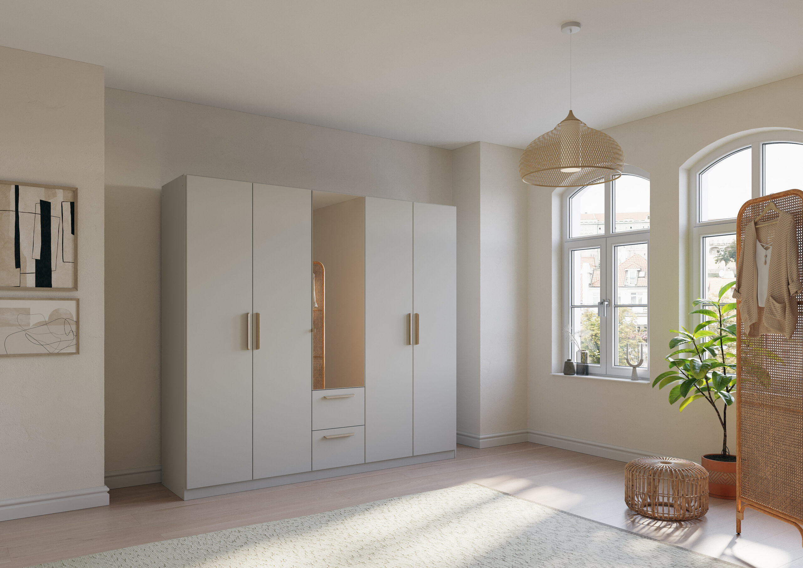 Drehtür S1200, Falttür S1200, Silber eloxiert, Floatglas Matelac® Pure White, Innensystem Uno, Weiß-Dekor, Platinweiß ST2, Weiss, Hauswirtschaftsraum, HWR, Hinge door, Folding door, silver anodized, Float glass Matelac® Pure White, Interior System Uno, white-decor, platinwhite ST2, white, utility room